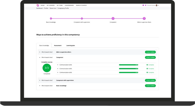 Recompense a sua equipa por concluir e criar conteúdos de formação com qualidade. Um elemento competitivo impulsiona a motivação e o interesse.